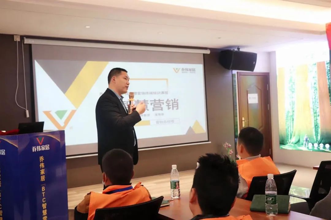 由來(lái)自喬偉商學(xué)院的首席導(dǎo)師鄧義先生為大家?guī)?lái)定制家居線上線下相結(jié)合銷(xiāo)售速成之“三大法門(mén)、四大要素”。通過(guò)現(xiàn)場(chǎng)的互動(dòng)增強(qiáng)了銷(xiāo)售員的自信心及對(duì)產(chǎn)品的底氣。