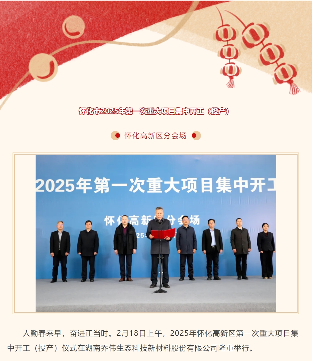 懷化高新區(qū)2025年第一次重大項(xiàng)目集中開(kāi)工(投產(chǎn))儀式在喬偉家居集團(tuán)舉行