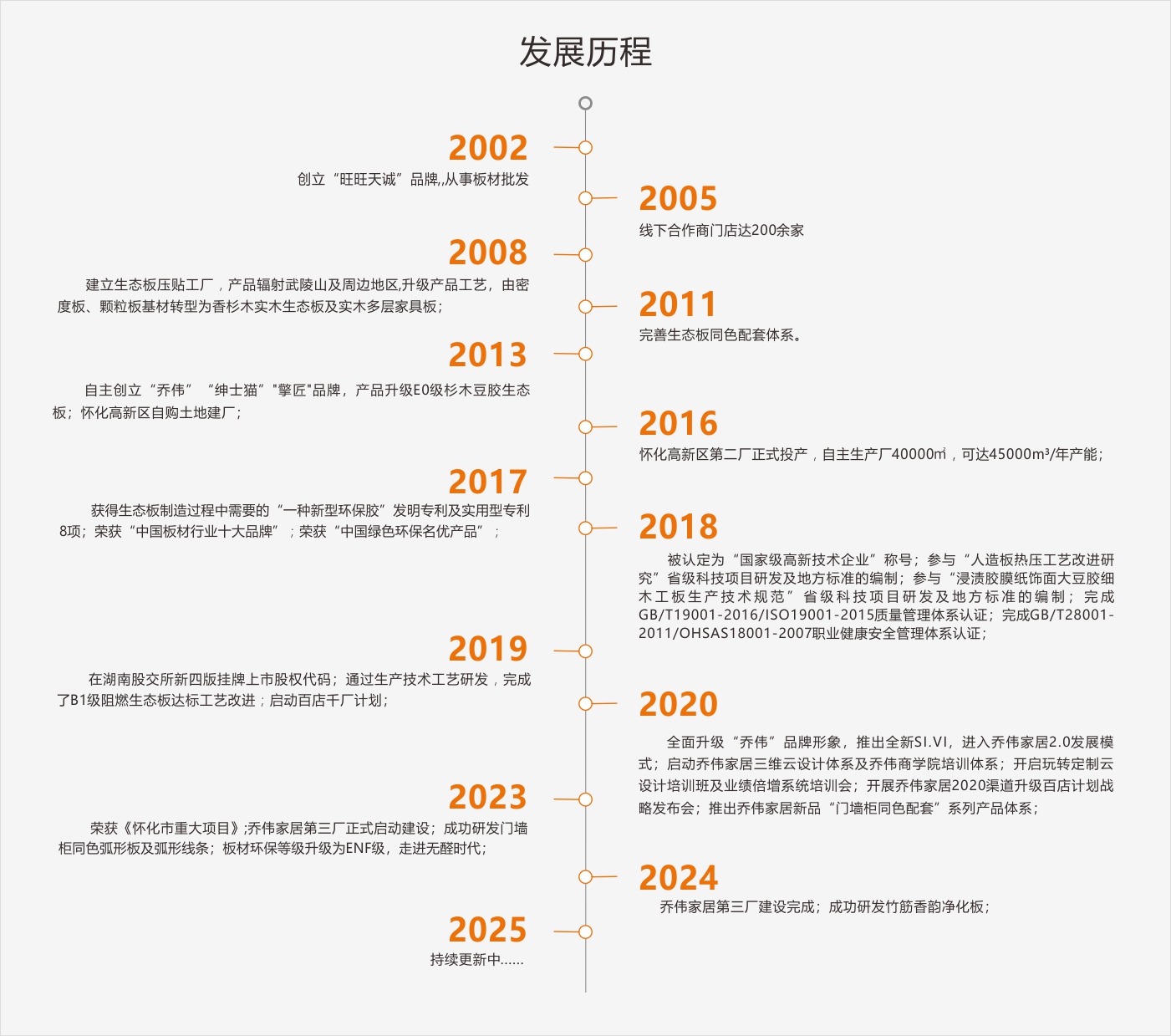 喬偉家居集團(tuán)創(chuàng)立2002年,總部位于湖南省懷化高新區(qū)產(chǎn)業(yè)園,是一家專注于竹木生態(tài)板、竹木混合新材料及板式智能家居研發(fā)的國家高新技術(shù)企業(yè)。集團(tuán)現(xiàn)擁有5萬余平方米現(xiàn)代化產(chǎn)業(yè)園區(qū),注冊(cè)資金1113萬元,累計(jì)投資1.2億元。旗下設(shè)立3家全資子公司,有“喬偉、旺旺天誠、紳士貓、擎匠”四大自主品牌體系。現(xiàn)有員工320人,其中專業(yè)研發(fā)人員18人,本科以上學(xué)歷管理人員58人,20201230日在湖南省股交所掛牌,股權(quán)代碼600370HN。