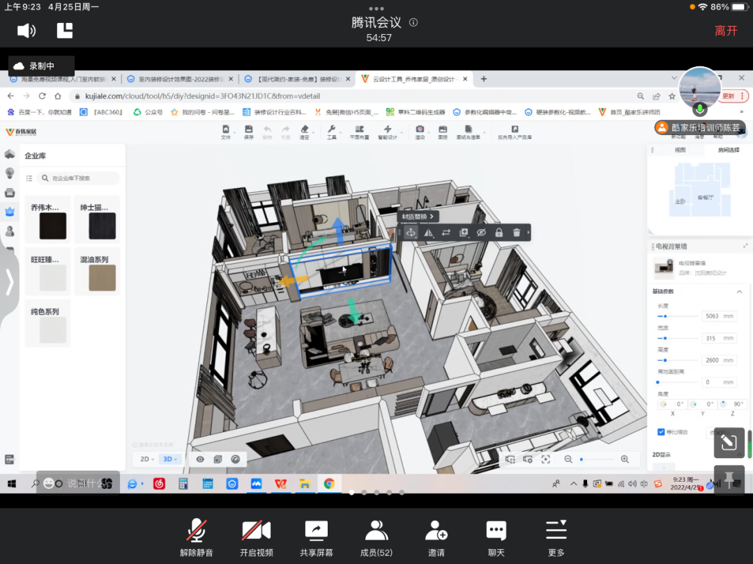 伴隨著活躍的彈幕涌起,陳蕓講師為大家進(jìn)行軟件戶型工具、智能設(shè)計(jì)、材質(zhì)替換、全屋家具定制、櫥柜定制等實(shí)操演講。