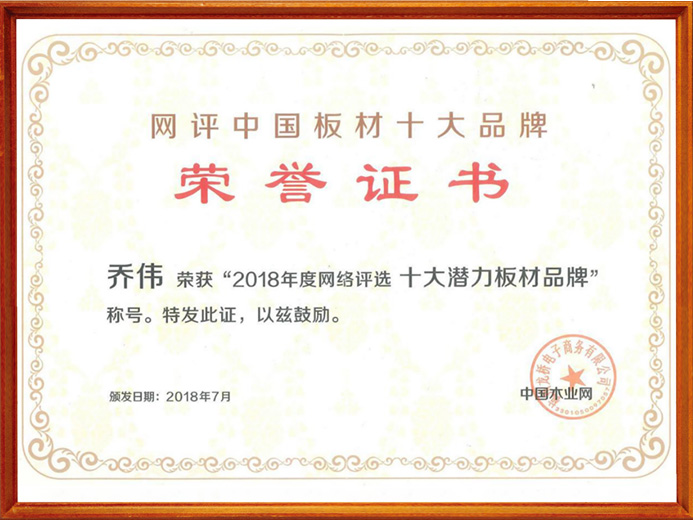網(wǎng)評(píng)中國(guó)板材十大品牌榮譽(yù)證書